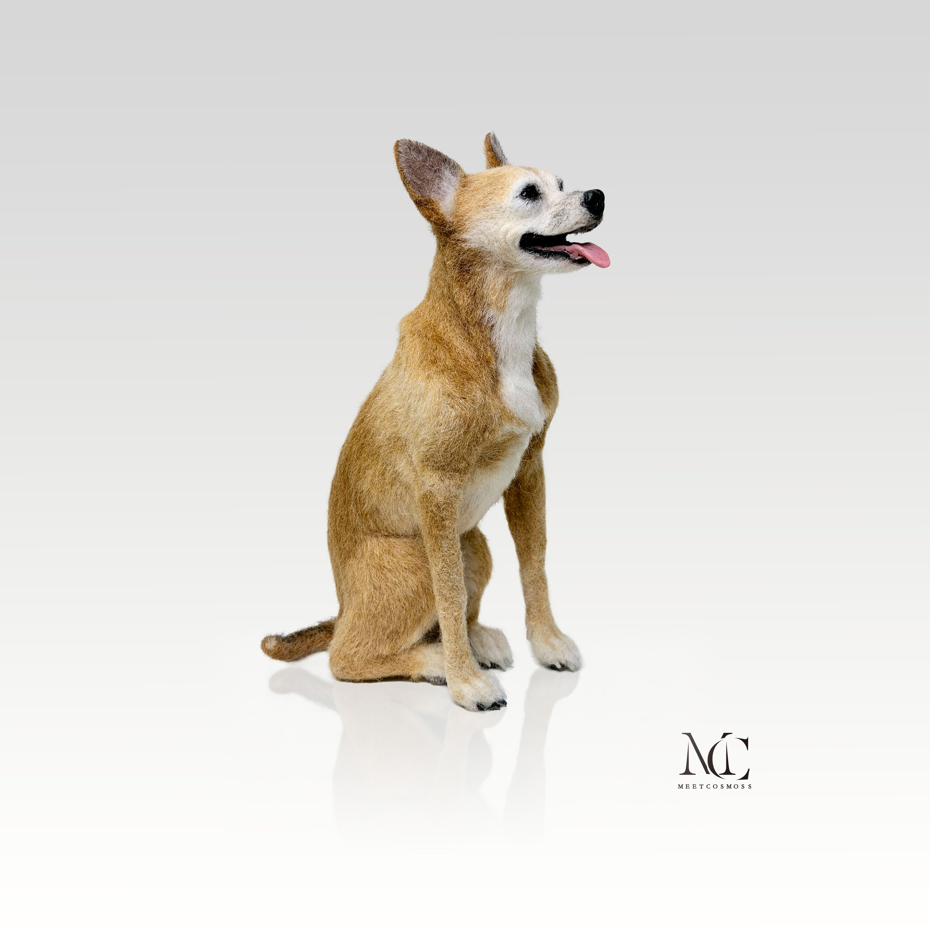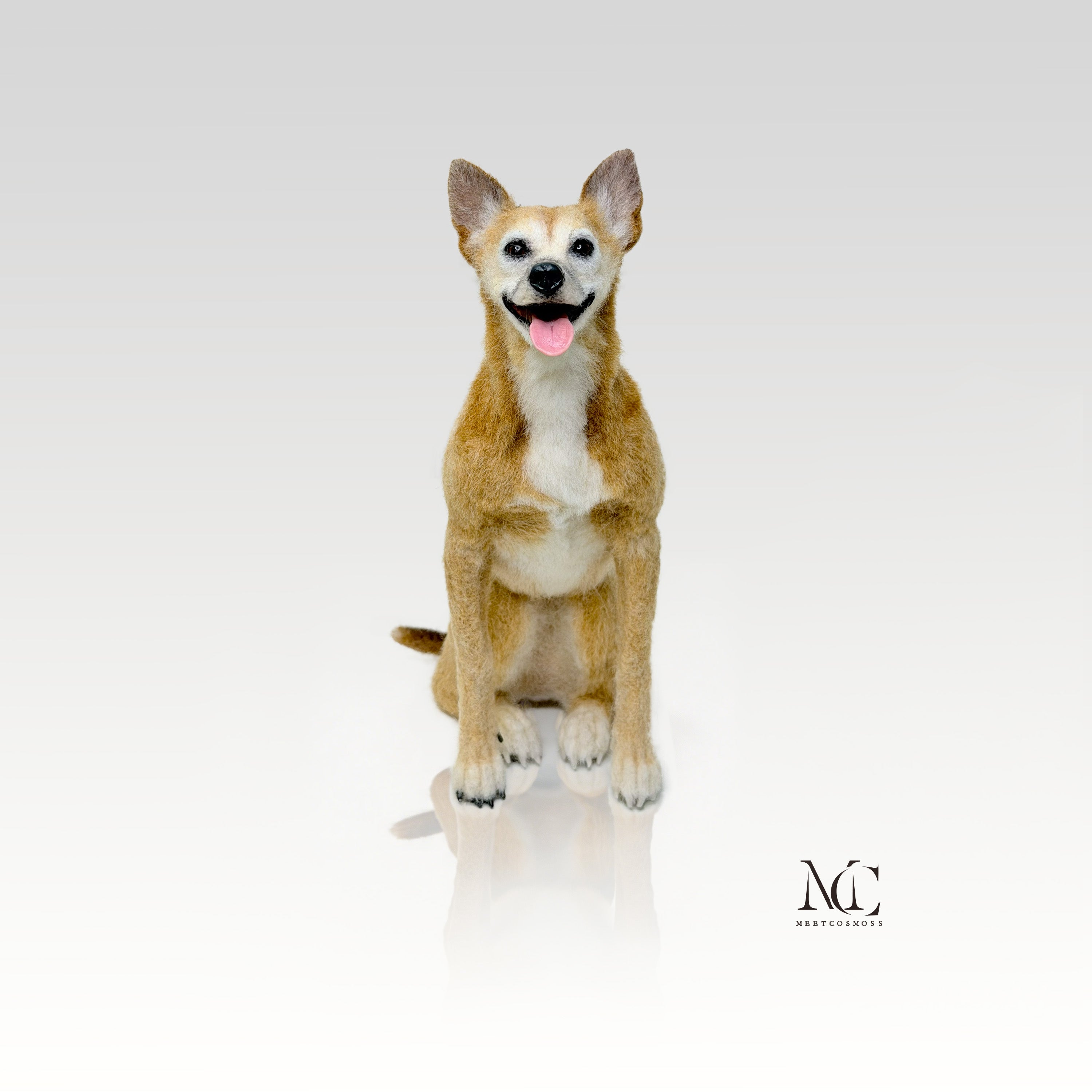 Welcome to Meetcosmoss, where we transform your cherished memories into handheld art. Using handmade wool felting techniques, we turn a photo of your beloved pet into a one of a kind, three dimensional sculpture. Every detail is meticulously crafted to your specifications—from a unique pose and a playful tongue to personal touches like birthmarks and spots—ensuring your custom felt creation is a perfect likeness of your companion. It's the most thoughtful and heartfelt gift for any pet lover.